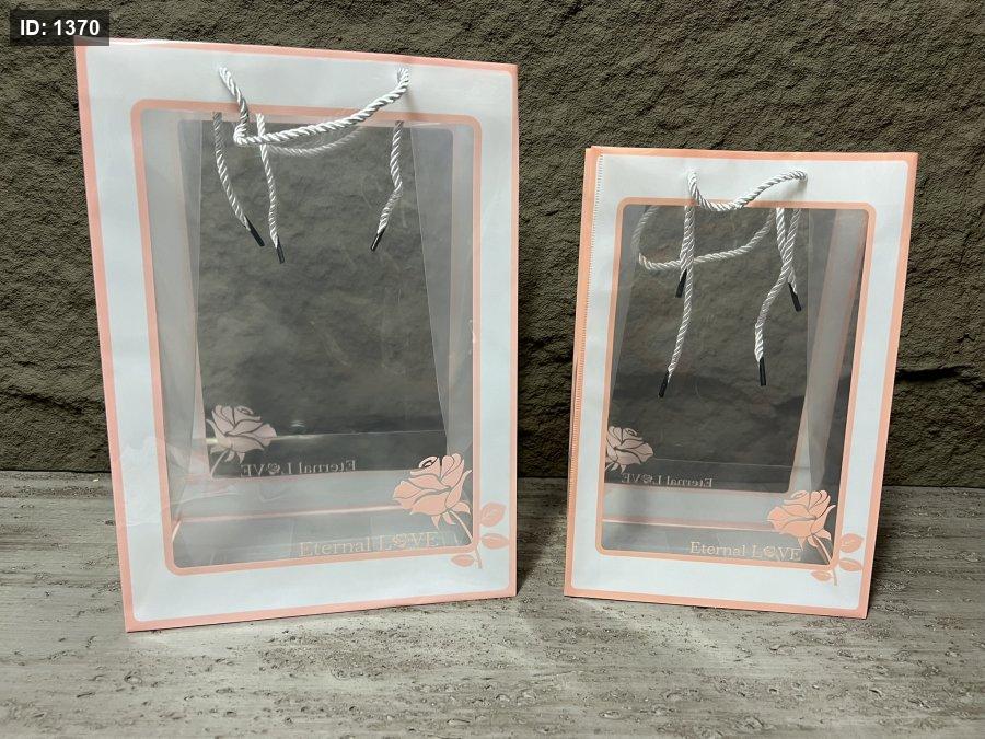 كيس هدايا بلاستك مقوى شفاف لون زهري مع وردة