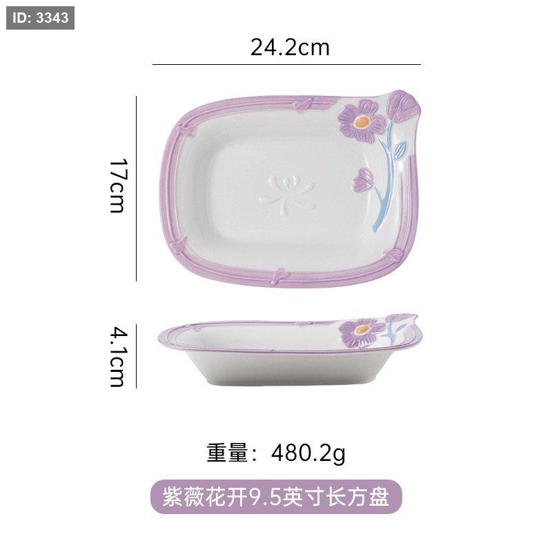 صحن بورسلان هاند ميد مورد بنفسجي مبسط كبير