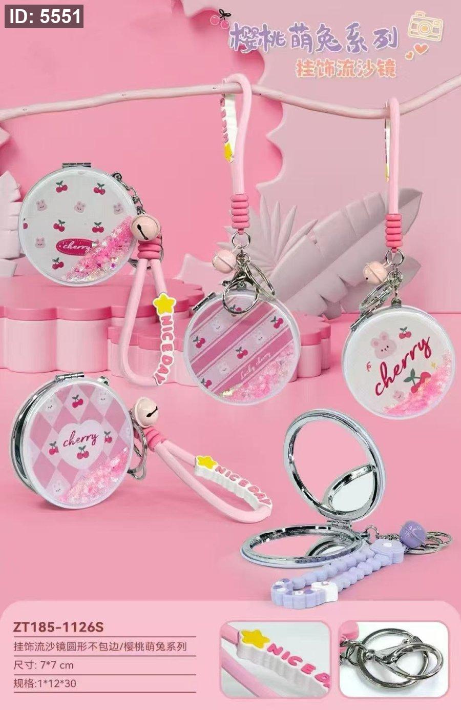 مراية حجم صغير للشنطة شكل دائري كرز مع تعليقة