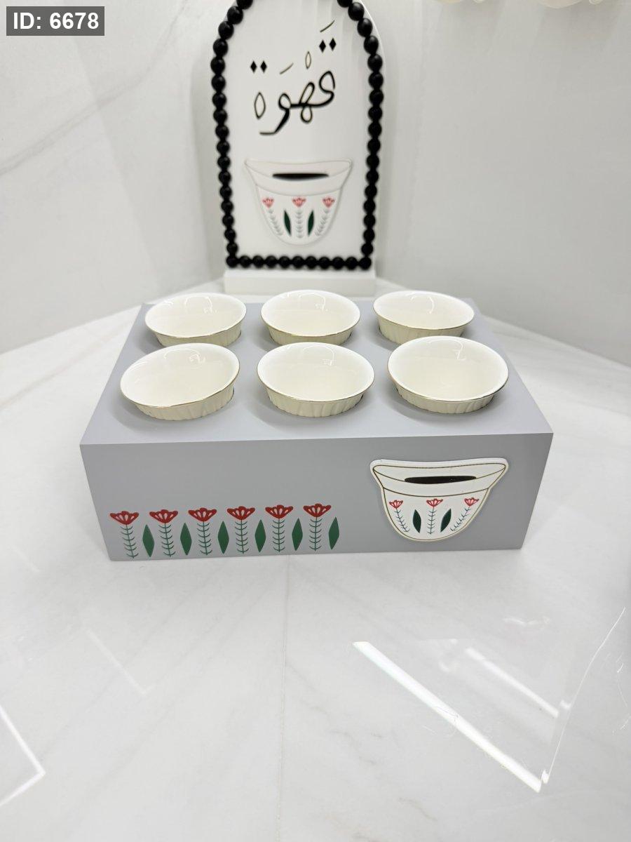 ستاند خشبي مع يدين كصينية تقديم لفناجين القهوة السادة