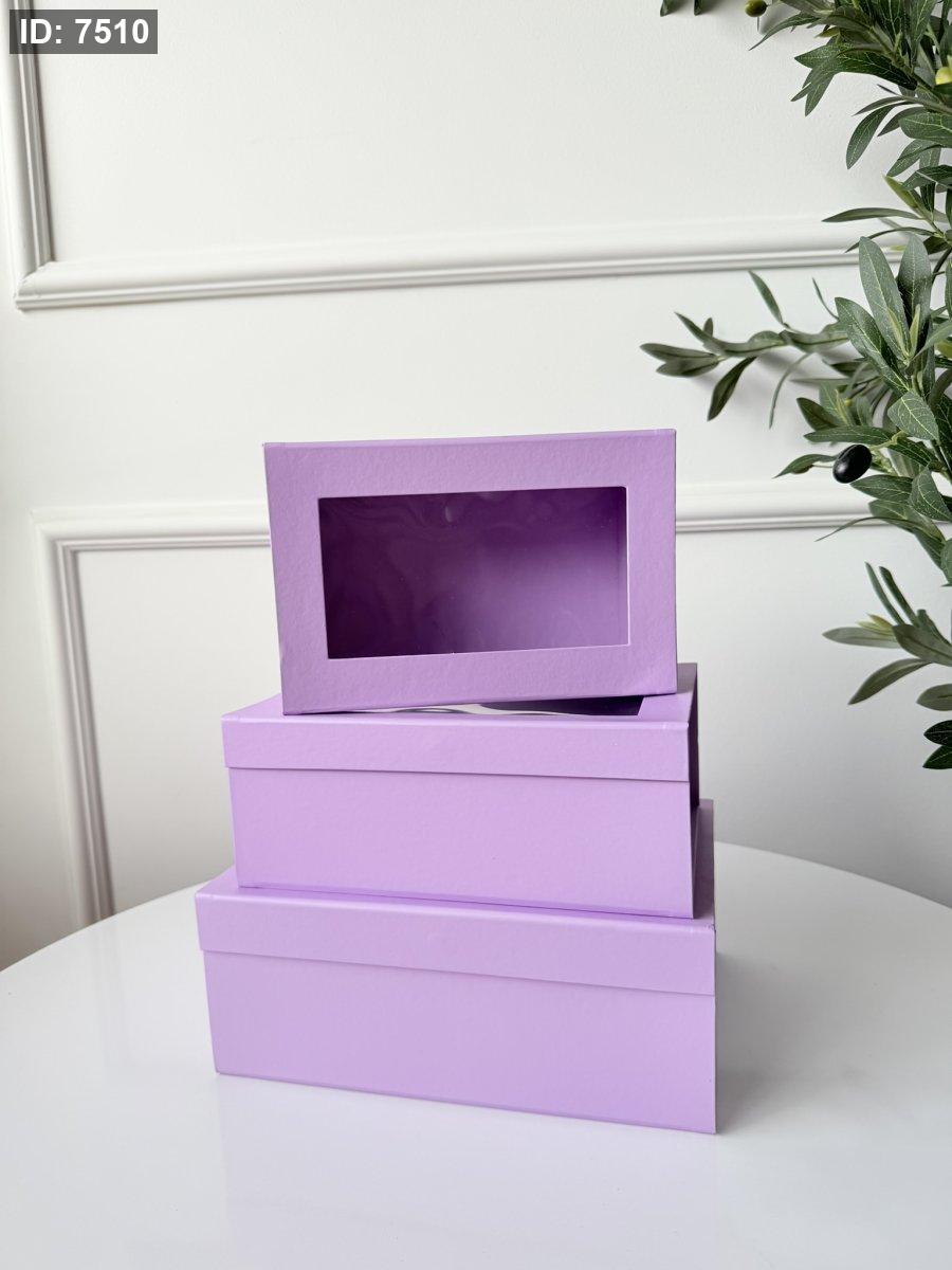 طقم صناديق كرتون مستطيل وجه شفاف 3 قطع
