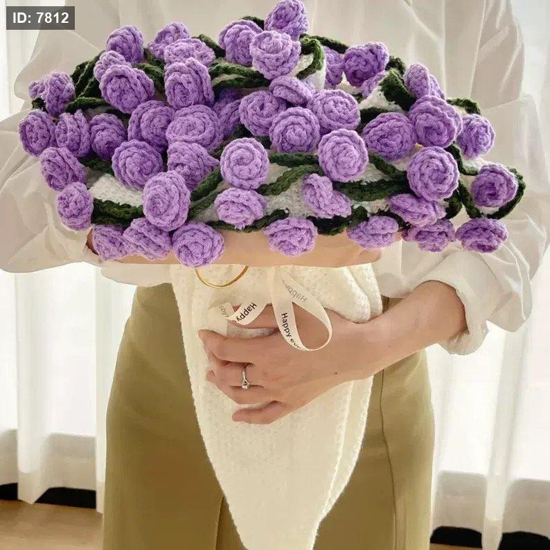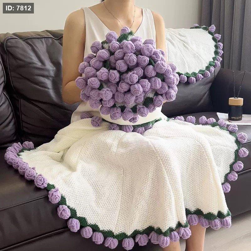 كروشية مفرش بوكيه الورد / شال الورد قطر 100 سم هاند ميد